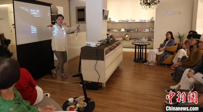 5月10日,臺灣知名藝術(shù)史學(xué)者朱惠良在臺北一個文化沙龍講述昆曲藝術(shù)。圖為朱惠良現(xiàn)場清唱《牡丹亭》名段。中新社記者 劉舒凌 攝