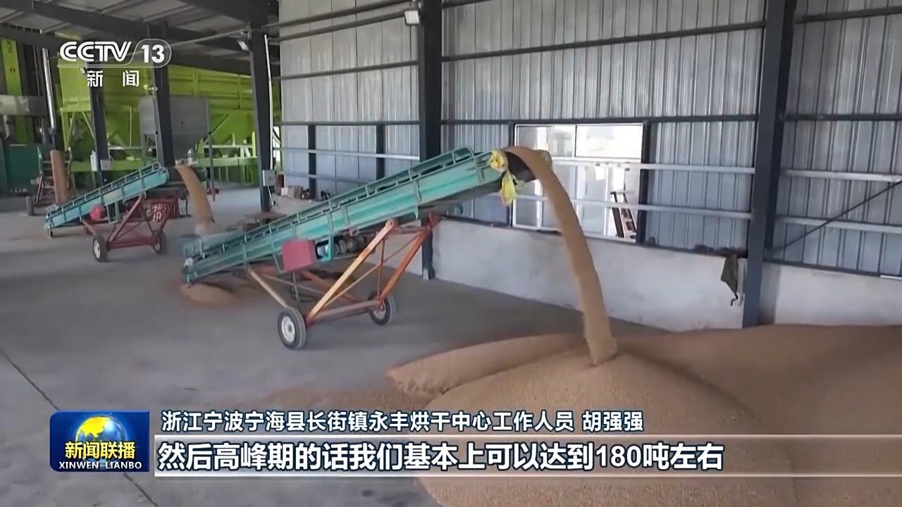 浙江寧波寧??h長街鎮(zhèn)永豐烘干中心工作人員 胡強強:一天我們目前烘干量在100來噸,高峰期我們基本上可以達到180噸左右。