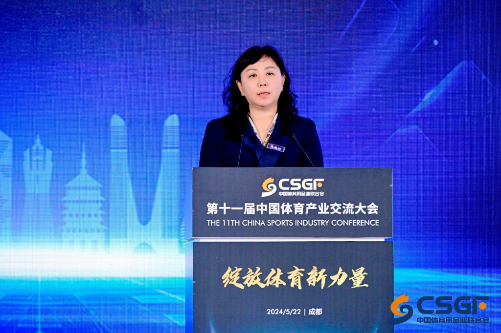 圖為國(guó)家體育總局體育經(jīng)濟(jì)司司長(zhǎng)楊雪鶇發(fā)言。