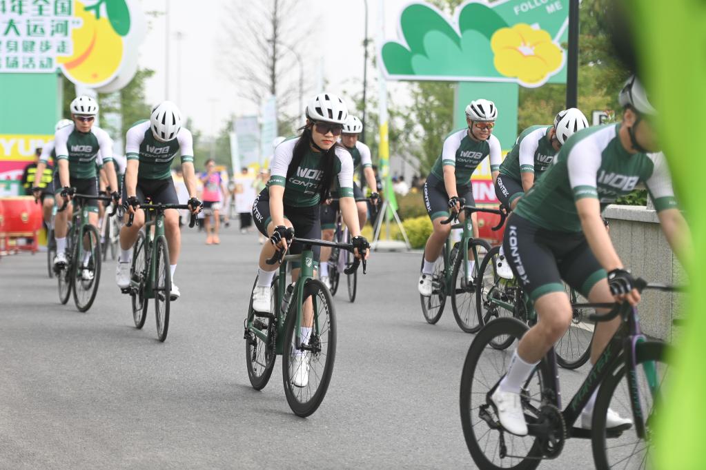 5月19日,2024年全國(guó)“行走大運(yùn)河”全民健身健步走活動(dòng)浙江站主會(huì)場(chǎng)活動(dòng)舉行。圖為騎行愛(ài)好者從京杭大運(yùn)河杭州臨平段塘棲運(yùn)動(dòng)活力園出發(fā)。新華社記者 黃宗治 攝