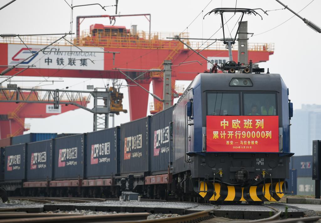 記者從中國(guó)國(guó)家鐵路集團(tuán)有限公司(下稱國(guó)鐵集團(tuán))獲悉,2024年5月25日8時(shí)40分,隨著X8157次中歐班列(西安—馬拉舍維奇)從西安國(guó)際港站開(kāi)出,至此中歐班列累計(jì)開(kāi)行突破9萬(wàn)列,發(fā)送貨物超870萬(wàn)標(biāo)箱、貨值超3800億美元,保持安全穩(wěn)定暢通運(yùn)行。