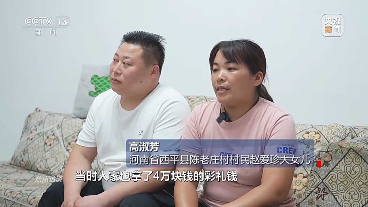 河南省西平縣陳老莊村村民趙愛珍三女婿 王偉:當時我正在創(chuàng)業(yè),手頭也不是很寬裕,就跟親戚朋友借了11萬塊錢。當時汝南縣的彩禮有16萬8的、有18萬8的,我跟女朋友商量了一下,就拿了11萬塊錢過來了。