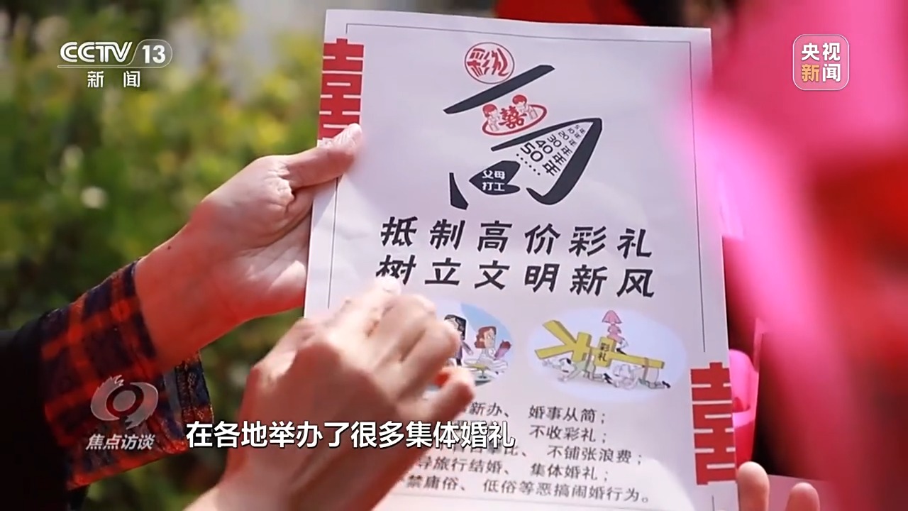 華中師范大學中國農村研究院教授 黃振華:通過移風易俗的方式,發(fā)揮村莊的內生動力。比如制定一些村規(guī)民約,調動村民的積極性。有些地方成立紅白理事會,由村里面的村干部、有威望的老人或者專門從事紅白事務的人參與,共同參與整治高價彩禮問題,取得了很好的成效。