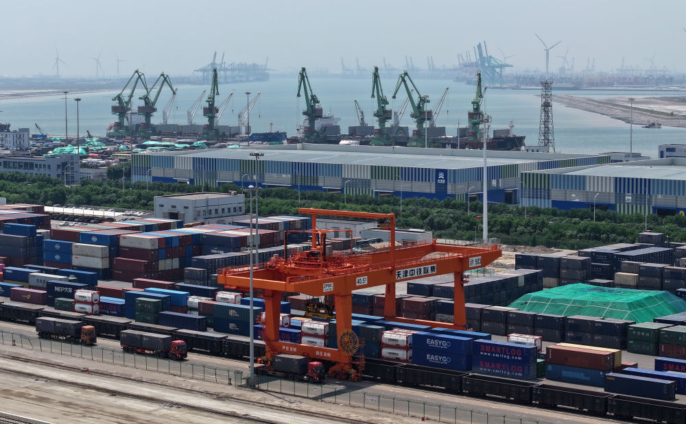 天津港正在實(shí)現(xiàn)“貨通全球”:北京的汽車運(yùn)往東南亞,裝滿進(jìn)口礦石的列車駛向中國(guó)西北,日韓生產(chǎn)的日用品短暫停留后發(fā)往蒙古國(guó),新疆的番茄醬從這里“乘船出?!鼻巴鶜W洲……