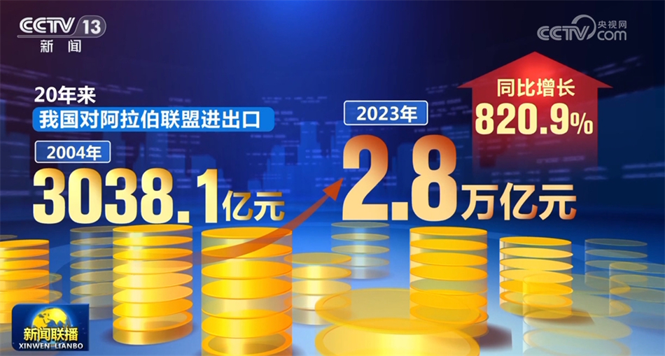 5月30日是中國—阿拉伯國家合作論壇成立20周年。據(jù)海關(guān)統(tǒng)計,20年來,我國對阿拉伯聯(lián)盟進出口由2004年的3038.1億元增長至2023年的2.8萬億元,同比增長820.9%。