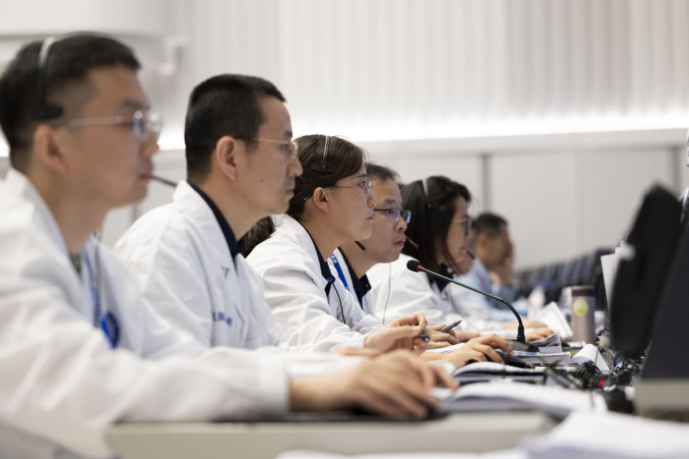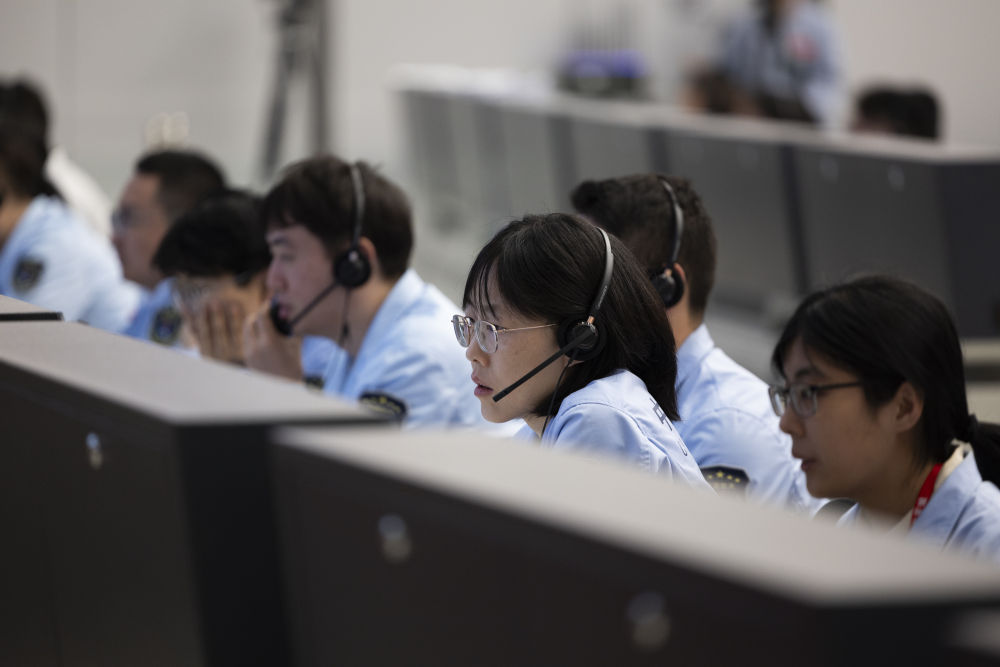 6月4日,在北京航天飛行控制中心,工作人員在觀察嫦娥六號上升器自月球背面起飛狀況。
