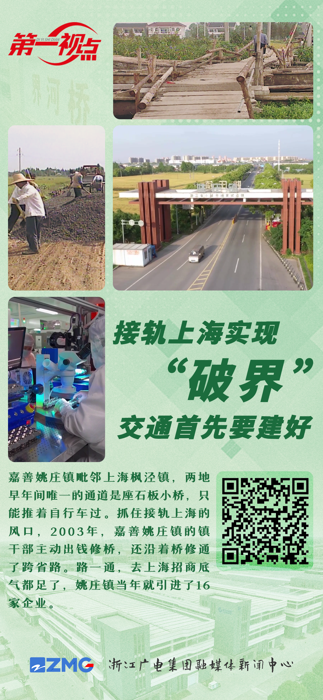 2003年5月,浙江省委、省政府出臺《關(guān)于主動接軌上海積極參與長江三角洲地區(qū)合作與交流的若干意見》。2003年7月,在省委十一屆四次全會上,習(xí)近平同志親自擘畫實施“八八戰(zhàn)略”,其中第二條明確提出“進一步發(fā)揮浙江的區(qū)位優(yōu)勢,主動接軌上海、積極參與長江三角洲地區(qū)合作與交流,不斷提高對內(nèi)對外開放水平”。