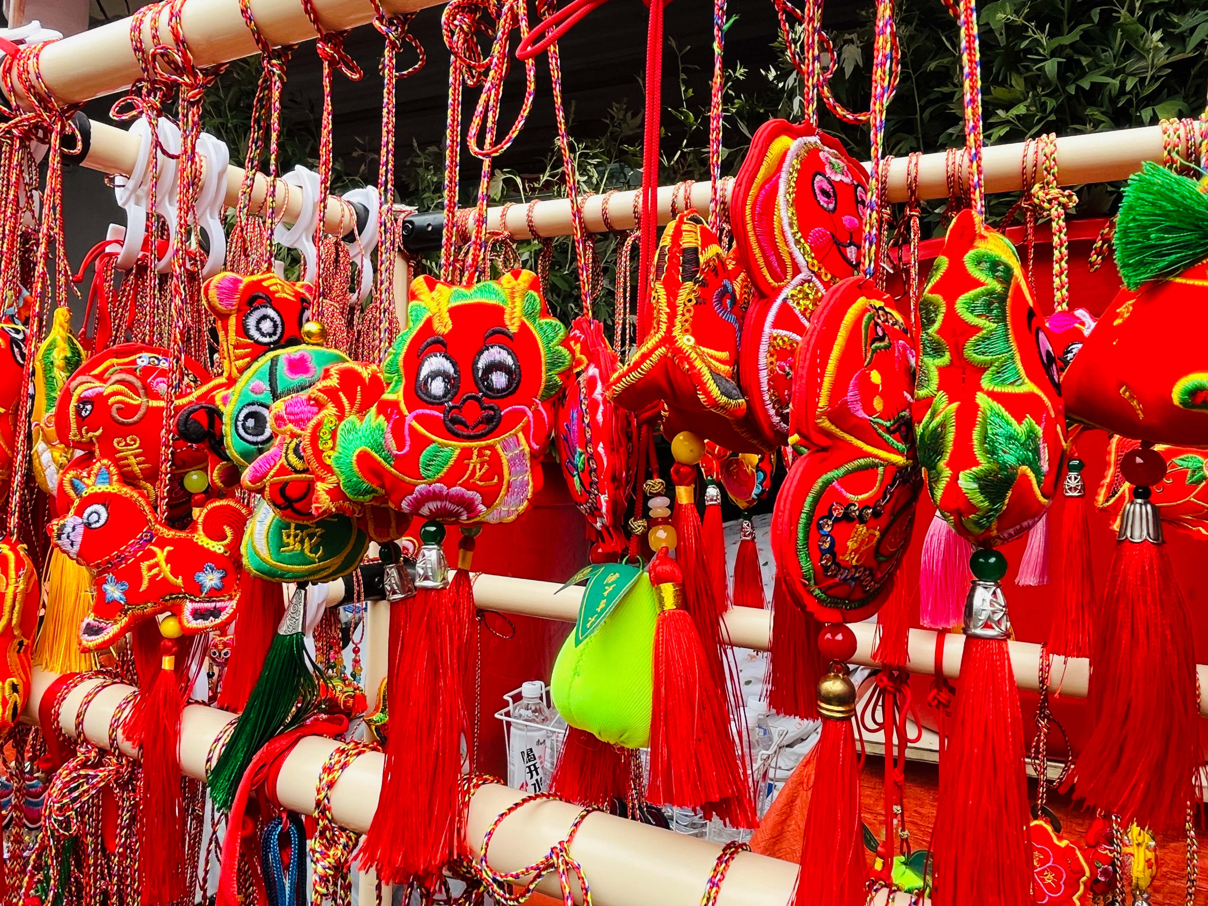 圖為琳瑯滿目的刺繡香囊。人民網(wǎng)記者 何晶茹攝。