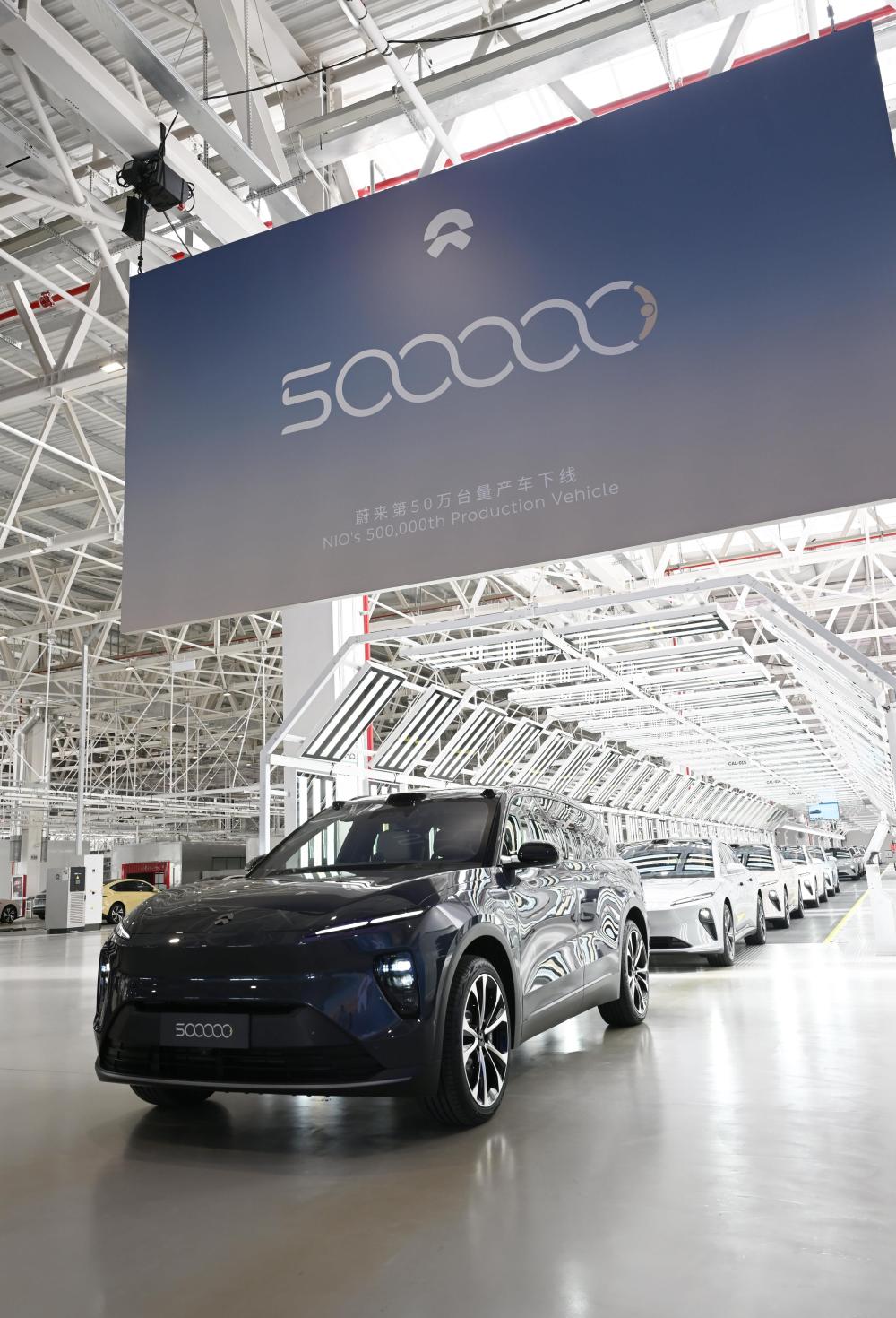 在安徽省合肥市新橋智能電動(dòng)汽車產(chǎn)業(yè)園蔚來合肥第二工廠,蔚來第50萬臺(tái)量產(chǎn)車下線(2024年5月9日攝)。