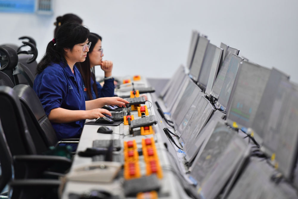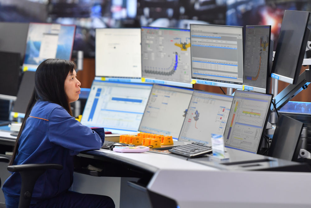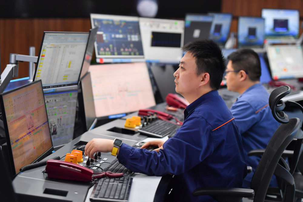2024年6月13日,在位于湖南省湘潭市的湘潭鋼鐵集團(tuán)有限公司五米寬厚板廠智慧中心,工作人員在遠(yuǎn)程操作加熱爐設(shè)備。五米寬厚板廠智慧中心利用超融合、虛擬化、5G傳輸以及分布式計(jì)算和存儲等技術(shù),將五米板煉鋼、軋鋼和熱處理全工序的控制和二級、三級系統(tǒng)進(jìn)行整合,改善工人的工作環(huán)境,提高生產(chǎn)的自動化程度和效率。新華社記者 陳澤國 攝