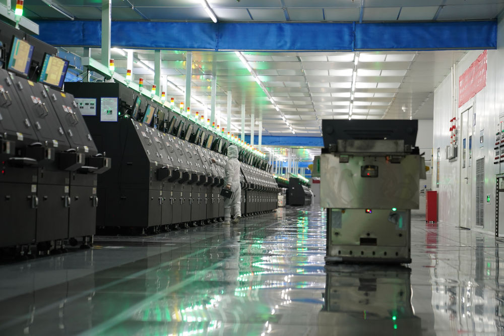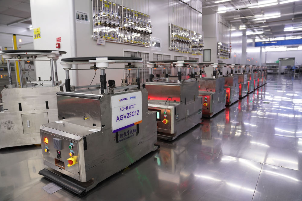 2024年6月4日,在位于江西省南昌市高新區(qū)的江西兆馳半導(dǎo)體有限公司外延車間,AGV自動轉(zhuǎn)運(yùn)小車在5G技術(shù)支持下進(jìn)行自動搬運(yùn)。 新華社記者 周密 攝