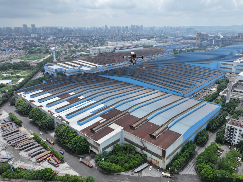 2024年6月13日,在湖南省湘潭市,無人機(jī)在湘潭鋼鐵集團(tuán)有限公司進(jìn)行智能巡檢(無人機(jī)照片)。無人機(jī)智能巡檢系統(tǒng)利用5G通信、北斗定位技術(shù)和“AI+機(jī)器視覺”等技術(shù),針對人員點(diǎn)檢不便的問題,對廠內(nèi)多場景進(jìn)行無人機(jī)定期智能巡檢,實(shí)現(xiàn)高爐測溫、電力絕緣端子巡檢等工作。 新華社記者 陳澤國 攝