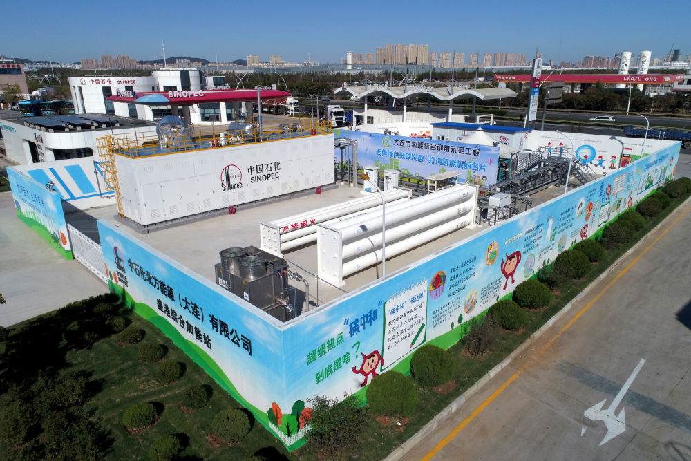 在大連盛港綜合加能站,一輛輛天藍(lán)色的氫能源公交車、白色的氫能源環(huán)衛(wèi)車不時(shí)開進(jìn)站內(nèi),不一會(huì)兒就能完成加氫操作。這座中石化旗下的甲醇制氫加氫一體站,每天可穩(wěn)定產(chǎn)出1000公斤高純度氫氣,占地面積僅64平方米,場(chǎng)地利用率高,易于推廣復(fù)制。