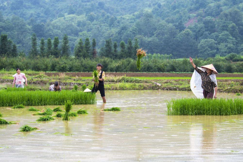 6月10日,湖南省常寧市勝橋鎮(zhèn)農(nóng)民在起秧苗。新華社發(fā)(周秀魚春 攝)