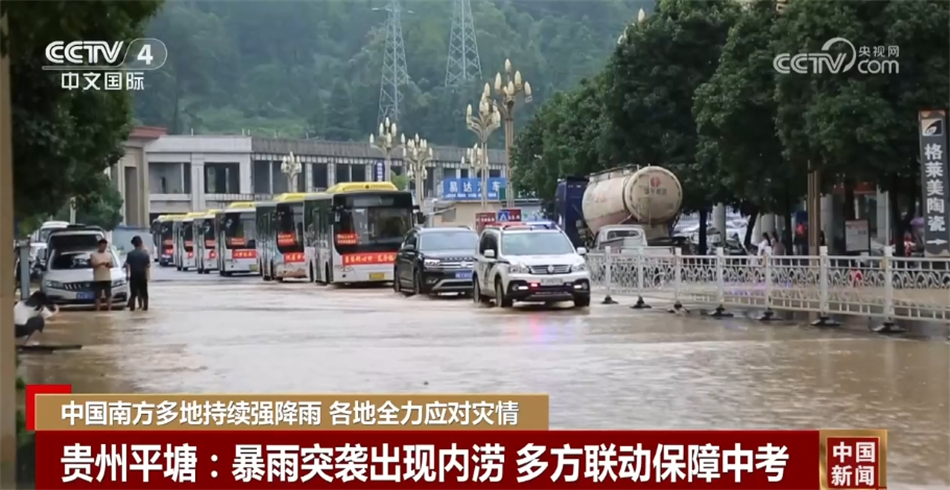 受強降雨的影響,23日,貴州平塘縣低洼路段出現(xiàn)內(nèi)澇。恰逢當?shù)刂锌甲詈笠惶?,為保障學生順利參考,平塘縣第一時間啟動應急預案,引導接送考生車輛安全行駛。