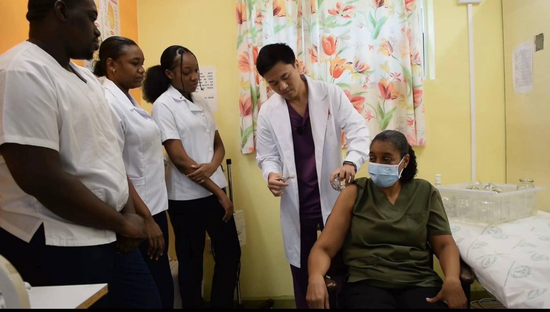 今年是中國共產(chǎn)黨成立103周年。在加勒比海島國巴巴多斯,自2016年以來,中國援外醫(yī)護人員先后有53人次在首都布里奇頓的伊麗莎白女王醫(yī)院工作。2023年9月,第6批援巴巴多斯中國醫(yī)療隊來到這里,在8位白衣天使中就有5名黨員。