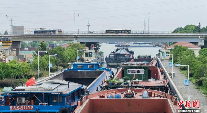 張濤介紹,之前蘇南蘇北運河標(biāo)準(zhǔn)不一,過大船只無法駛?cè)胩K南段運河,需在長江過駁,把大船上的貨物通過小船分運。改造完成之后,南北可以統(tǒng)一通航,既大大提高通航效率,也對長江的生態(tài)環(huán)境起到重要保護作用。
