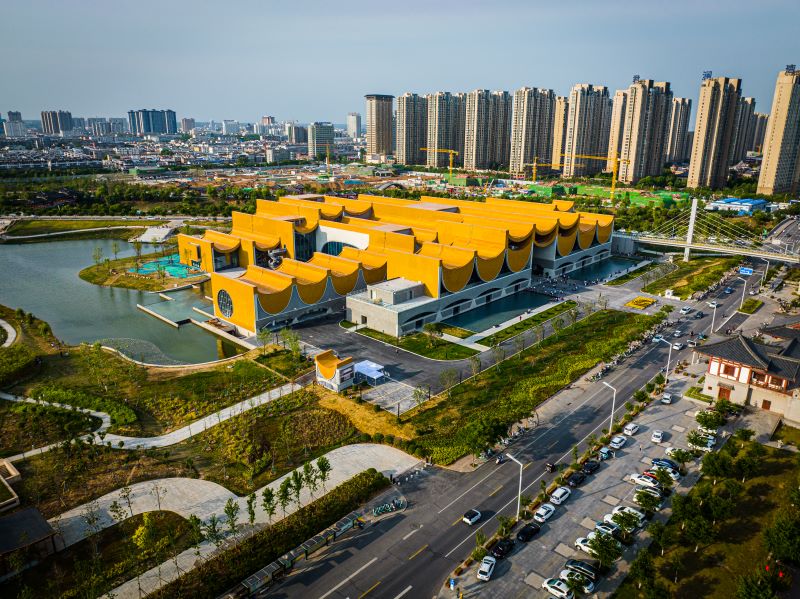 盛夏時(shí)節(jié),駐足洛河(大運(yùn)河洛陽(yáng)段)之畔,能望見(jiàn)別致的金色屋頂在陽(yáng)光下熠熠生輝,好似連綿起伏的風(fēng)吹船帆。這里,正是洛陽(yáng)隋唐大運(yùn)河文化博物館。