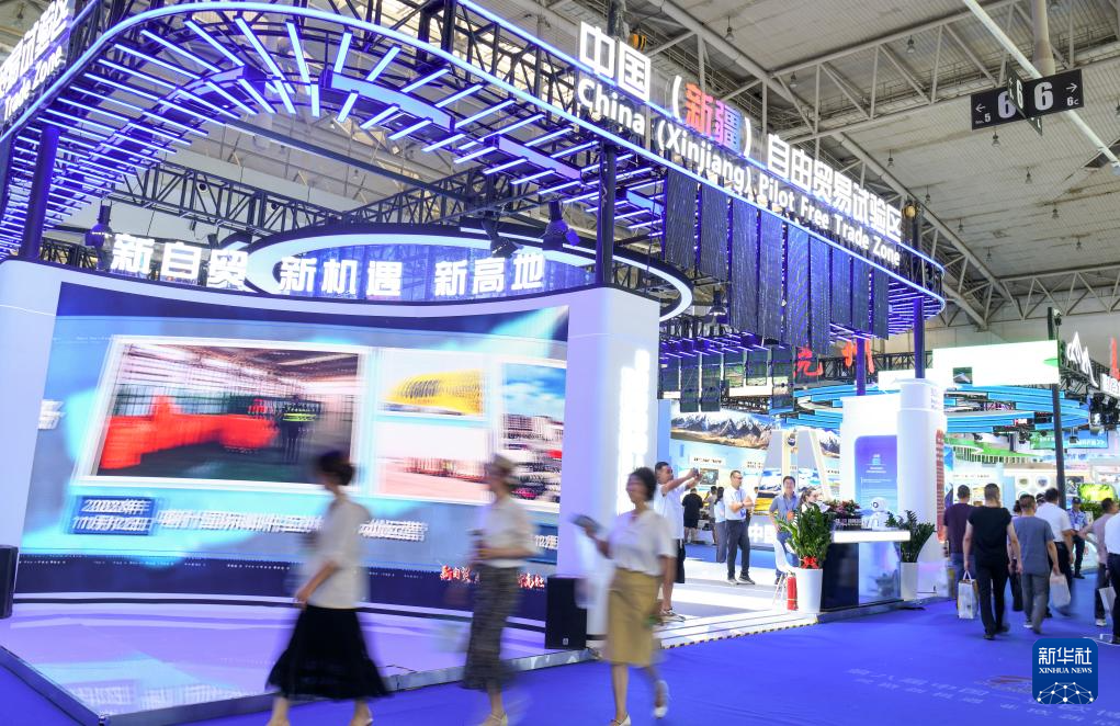 2024年6月27日,在第八屆中國—亞歐博覽會(huì)上,觀眾在中國(新疆)自由貿(mào)易試驗(yàn)區(qū)展臺參觀。新華社記者 王菲 攝