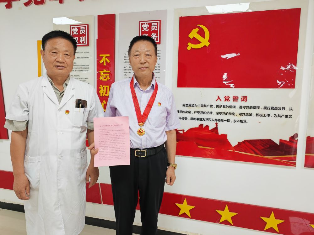 為李長(zhǎng)海頒發(fā)紀(jì)念章的是西安市高陵區(qū)醫(yī)院退休黨支部書記杜軍政,從2021年至今,他已經(jīng)為6名黨員頒發(fā)過(guò)“光榮在黨50年”紀(jì)念章。“每一次頒發(fā)紀(jì)念章,都會(huì)聽(tīng)老黨員講一講他們的故事,都是一次精神的洗禮和傳承?!?/p>