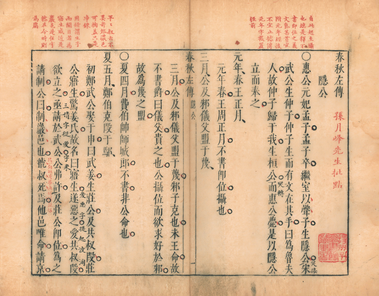 大運河最早出現(xiàn)在古籍中是在春秋時期。揚州市圖書館館藏明萬歷四十四年孫礦批點、閔齊伋刻朱墨套印體《春秋·左傳注》記載,“哀公九年,吳城邗,溝通江淮”,公元前486年,吳王夫差子承父業(yè),開始了北伐征程,他吸取了父親兵敗的教訓,便另辟蹊徑在長江與淮河之間挖了一條人工運河。