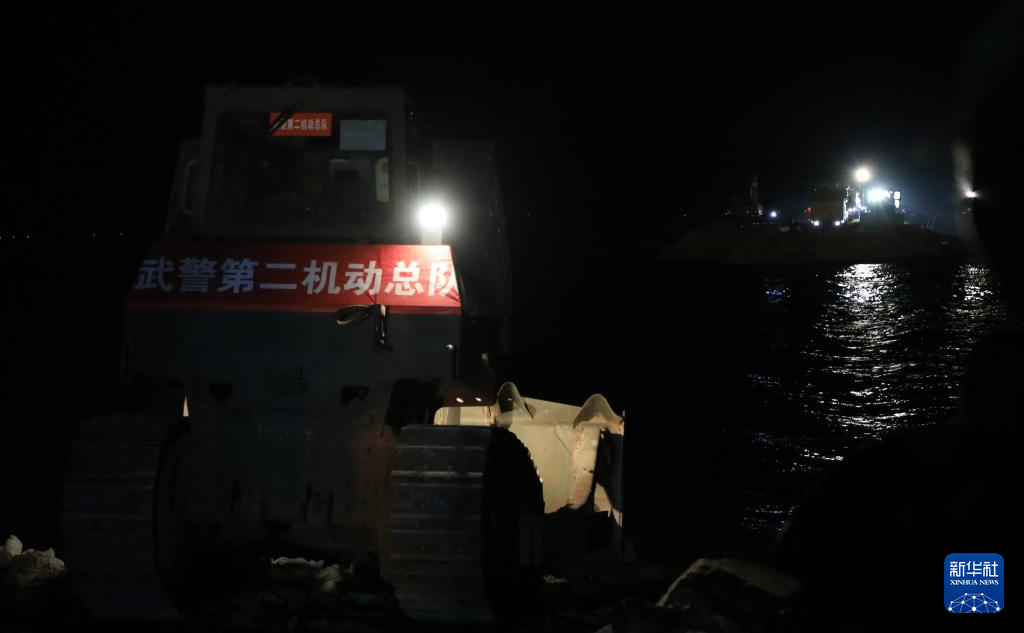 已是7日凌晨三點,武警第二機動總隊二級上士李貴權(quán)左手揮著紅色指揮旗,右手握著手電,指揮推土機把一塊塊大石料推進決口處。