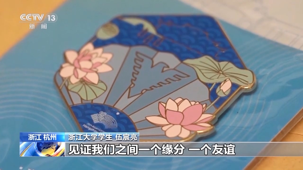 浙江大學學生 伍宸亮:這個徽章是浙江大學在去年的杭州亞運會、亞殘運會期間為志愿者設(shè)計的一個專屬的徽章,在徽章設(shè)計的過程中,它是全由我們同學自己設(shè)計的,也希望以這枚徽章,見證我們之間的緣分和友誼。