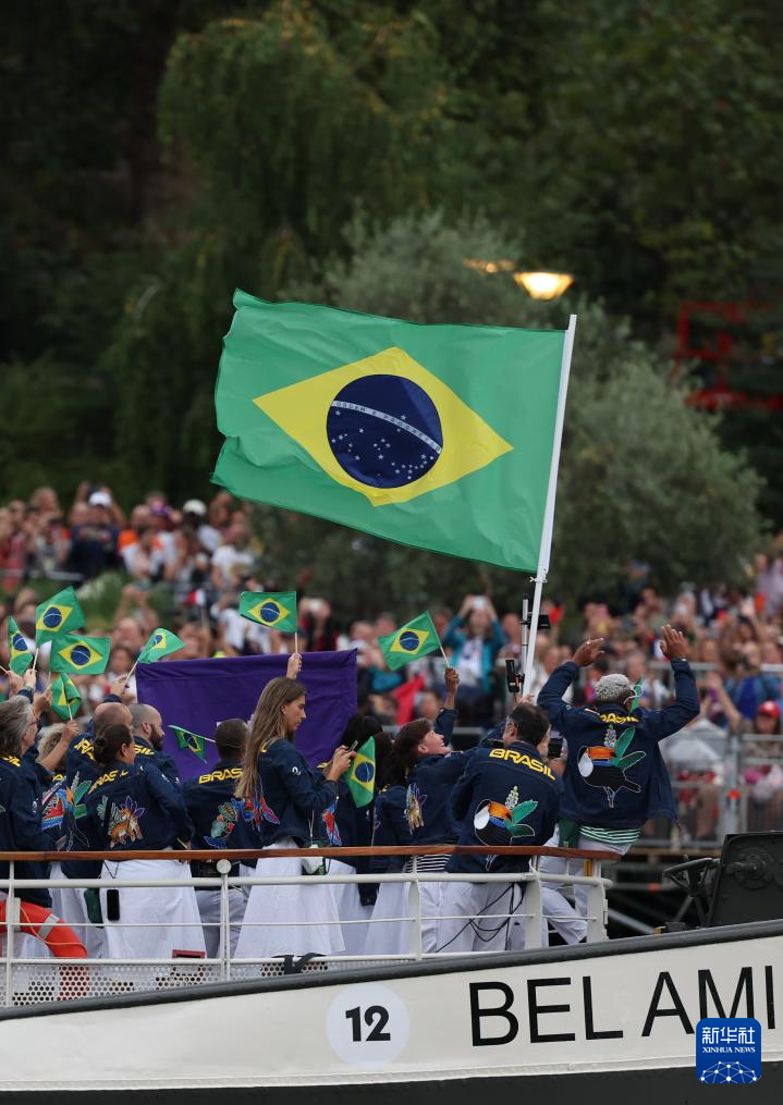 7月26日,巴西體育代表團成員在開幕式上。新華社記者 王東震 攝