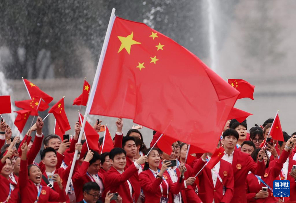 7月26日,中國體育代表團在開幕式上。新華社記者 郭昱 攝