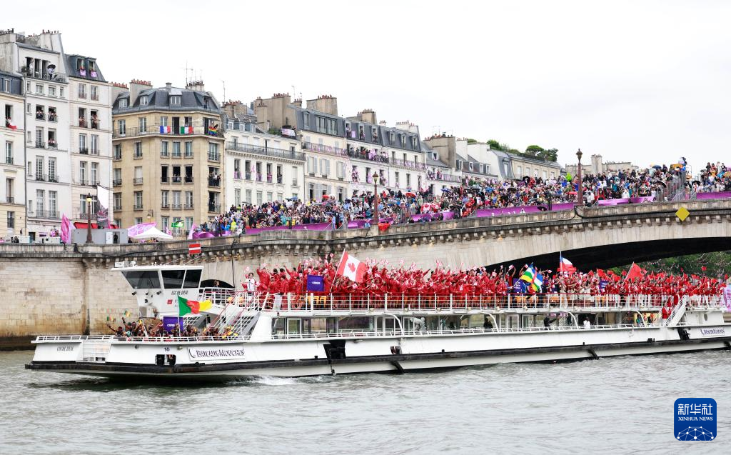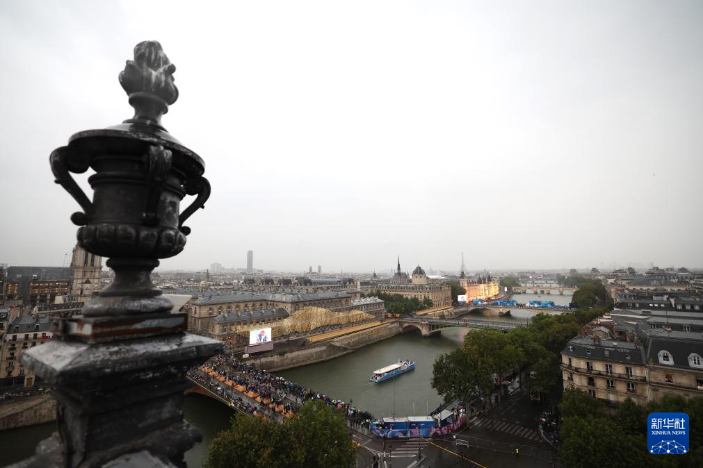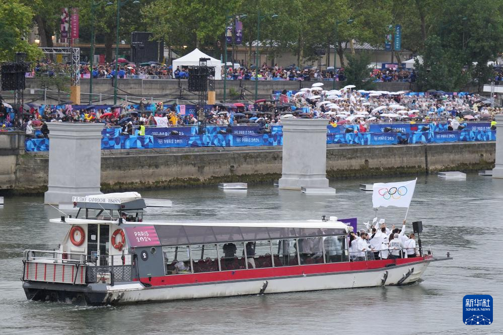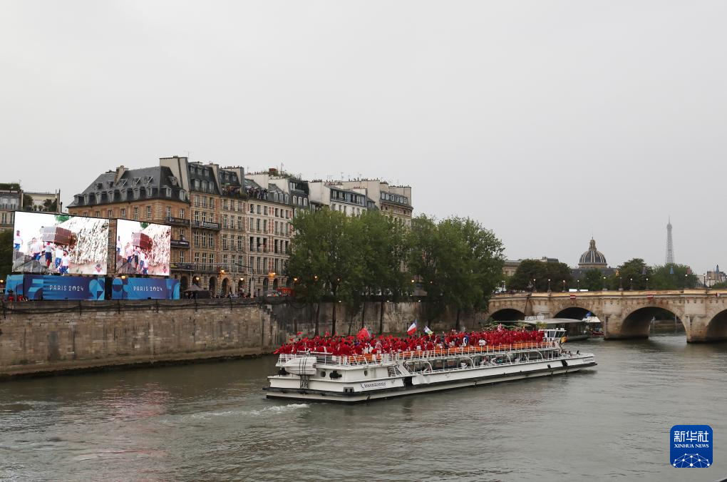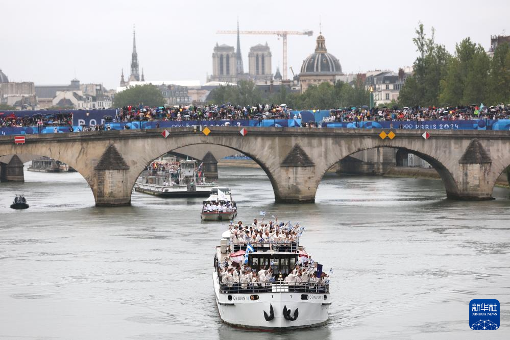 7月26日,各體育代表團在開幕式上,右側是巴黎圣母院。新華社發(fā)(POOL照片/丹·馬蘭)pagebreak