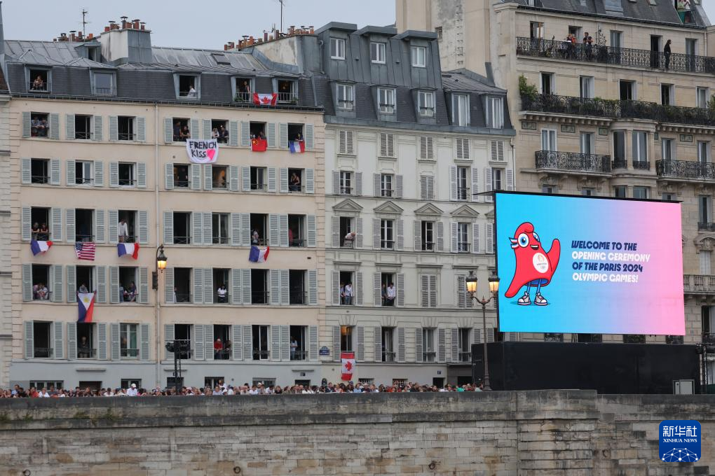 7月26日,觀眾在塞納河邊觀看開幕式。新華社記者 任正來 攝