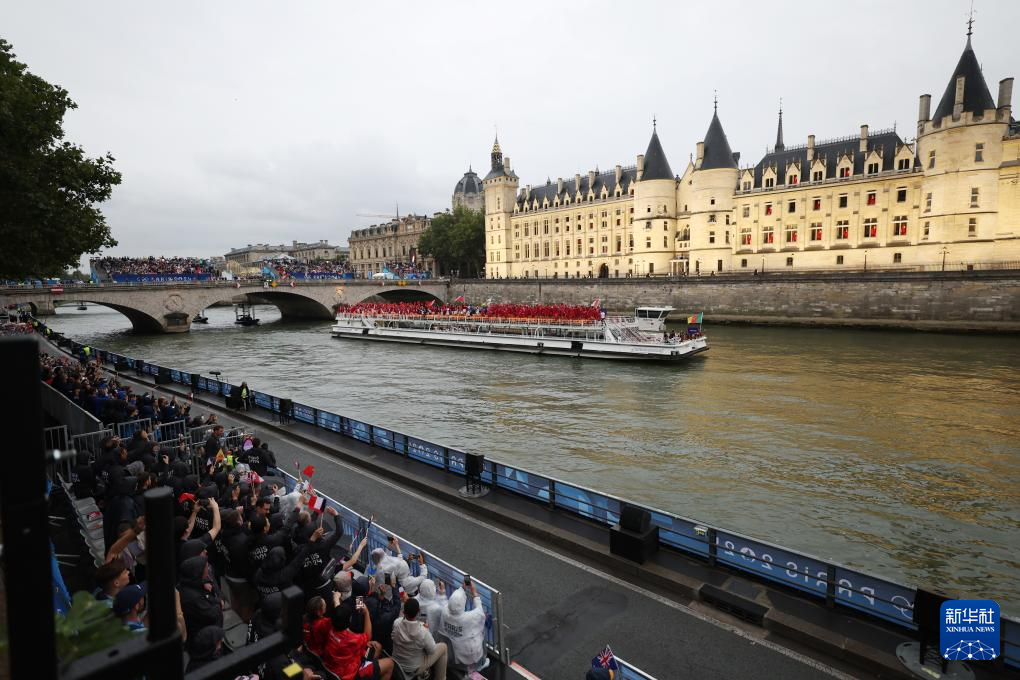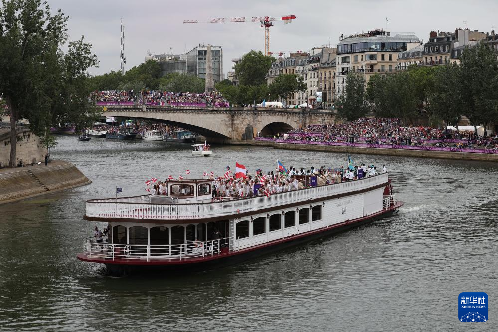 7月26日,各代表團成員在開幕式上抵達耶拿橋。新華社發(fā)(POOL照片/盧多維克·馬林)