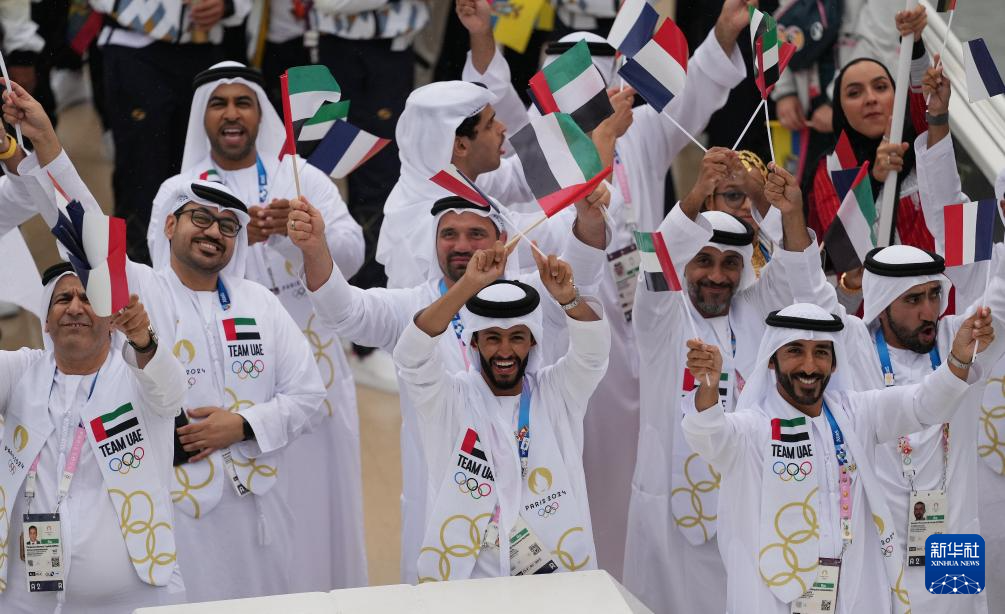 7月26日,各體育代表團在開幕式上。新華社發(fā)(POOL照片/里卡多·毛佐蘭)