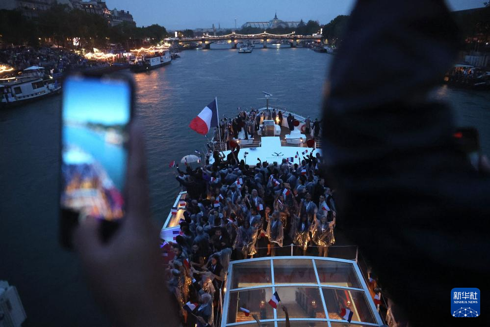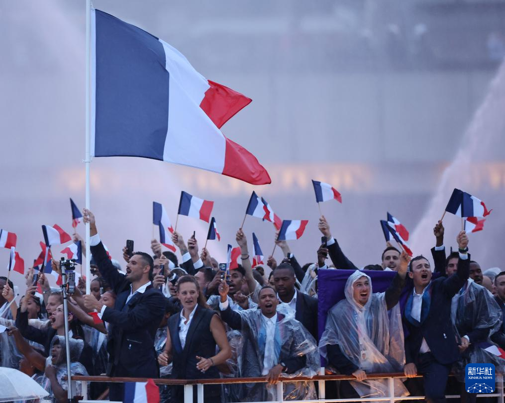 7月26日,法國體育代表團在開幕式上。新華社記者 郭昱 攝