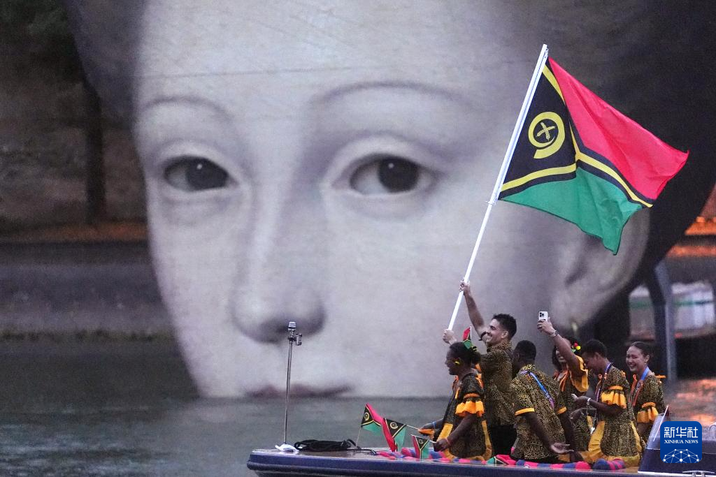 7月26日,瓦努阿圖體育代表團在開幕式上。新華社記者 萬象 攝