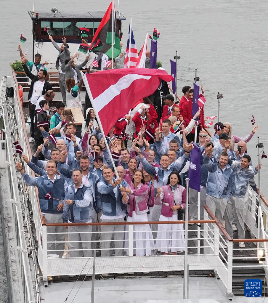 7月26日,拉脫維亞、黎巴嫩、利比里亞和利比亞體育代表團在開幕式上。新華社記者 萬象 攝pagebreak