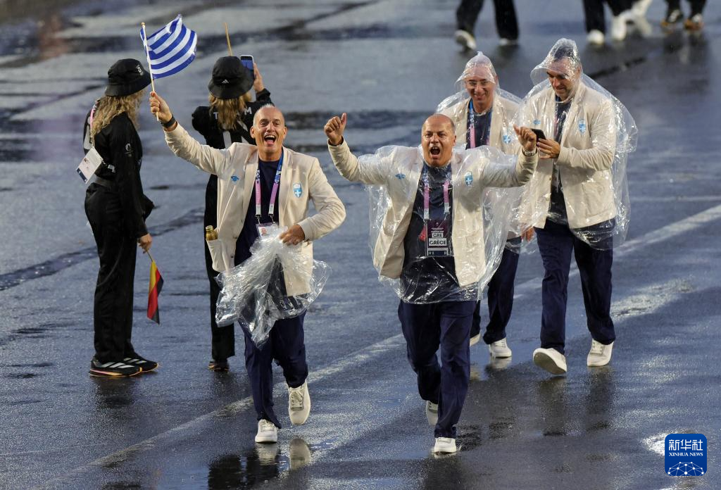 7月26日,希臘體育代表團在開幕式上。新華社記者 陳斌 攝