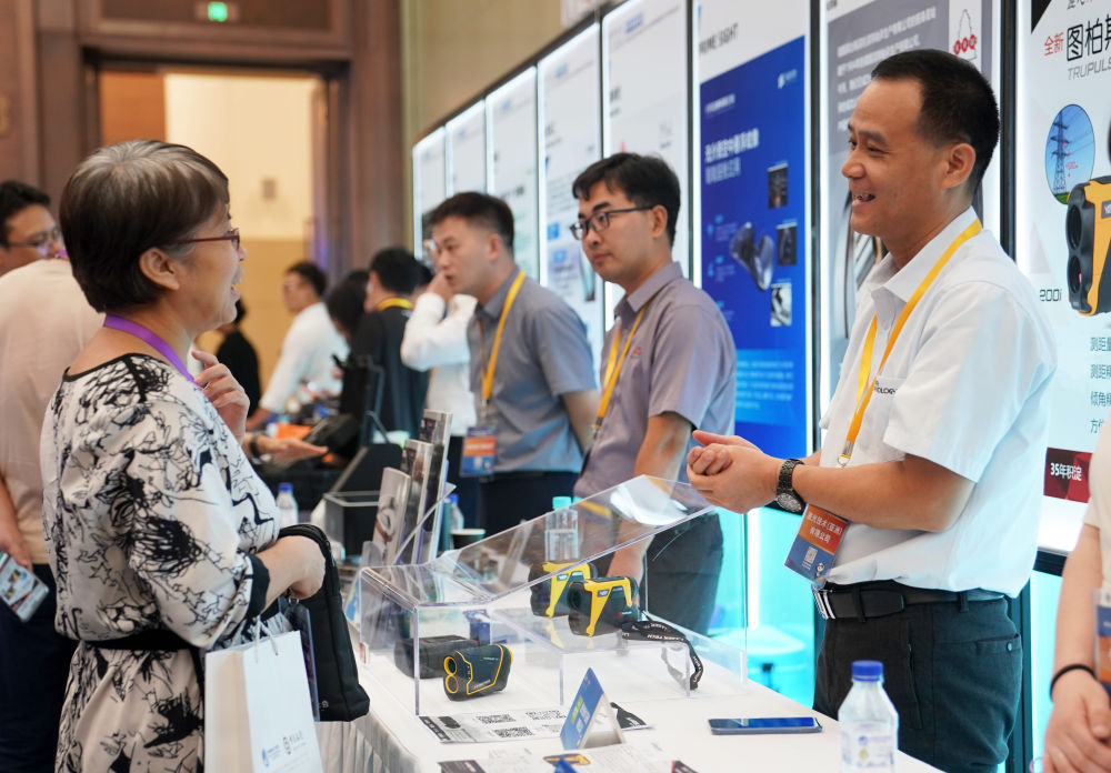 在第七屆進博會技術(shù)裝備、汽車展區(qū)展前供需對接會現(xiàn)場,展商工作人員(右)向采購商介紹企業(yè)產(chǎn)品(2024年8月8日攝)。 新華社發(fā)(陳浩明 攝)