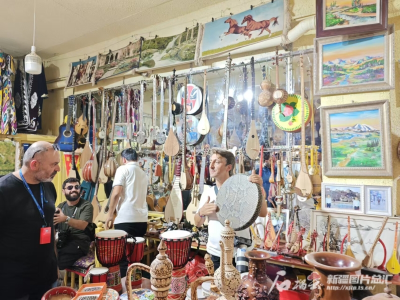 土耳其媒體人在喀什古城木器巴扎店內(nèi)參觀。石榴云/新疆日報記者 宋海波攝