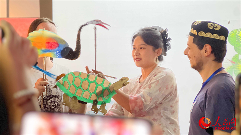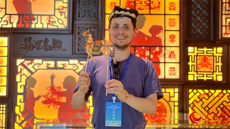 “這是我第一次來新疆,在來之前我很喜歡《吐魯番的葡萄熟了》這首歌,也對(duì)新疆充滿了好奇?!痹诓菝佬g(shù)館,俄羅斯翻譯家、現(xiàn)任莫斯科物理技術(shù)學(xué)院中文系副教授羅子毅在皮影戲展示區(qū)駐足觀看并親身體驗(yàn)了皮影戲的基本技巧?!拔覍W(xué)過表演,也很喜歡歌劇,這趟新疆之行剛開始就能體驗(yàn)到中國(guó)的皮影戲,我對(duì)后面的行程充滿了期待?!?/p>