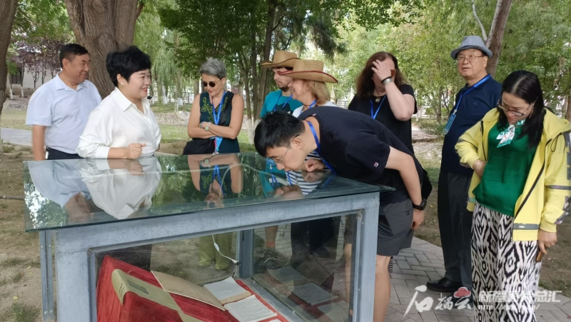 8月16日,中外漢學(xué)家、翻譯家、作家在察布查爾錫伯自治縣察布查爾報(bào)社參觀。石榴云/新疆日?qǐng)?bào)記者 宋衛(wèi)國(guó)攝