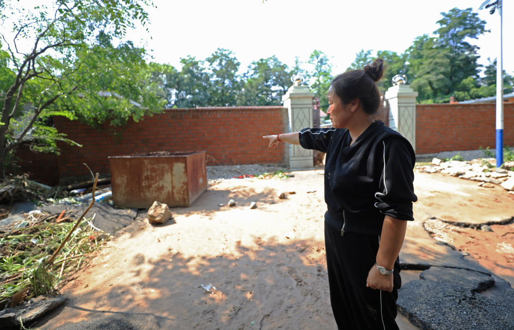 8月21日,在建昌縣黑山科鄉(xiāng)小臺子村,村婦聯(lián)干部臧春英講述李清學犧牲經(jīng)過。新華社記者 楊青 攝