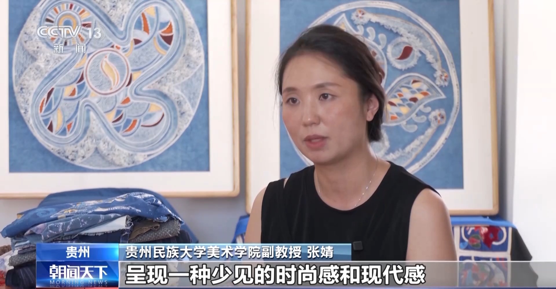 貴州民族大學美術學院副教授 張婧:在它的色調(diào)和質(zhì)感的對撞和對比下,使得劍河錫繡呈現(xiàn)一種少見的時尚感和現(xiàn)代感。