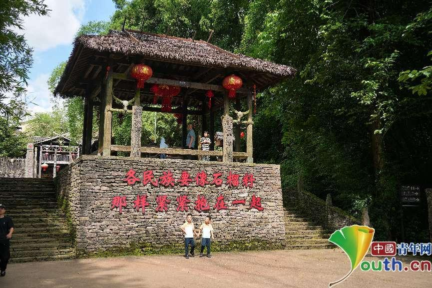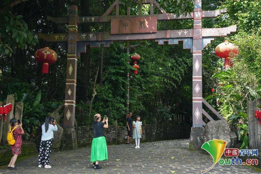 “中寨”寨門前,不少游客在打卡。中國青年網見習記者 曹偉 攝