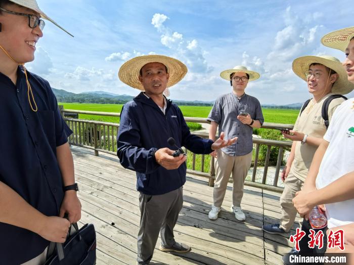 “而今邁步從頭越——長征路上學(xué)黨史”網(wǎng)上主題宣傳福建線活動采訪團(tuán)成員走進(jìn)汀江國家濕地公園,感受長汀生態(tài)治理成果。中新網(wǎng)記者 張金川 攝