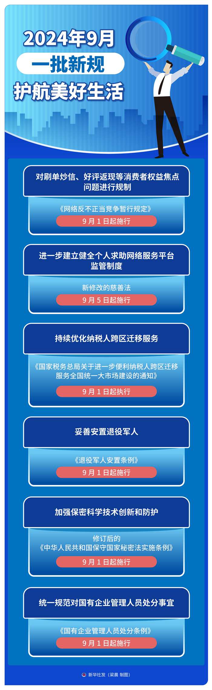 對刷單炒信、好評返現(xiàn)等消費者權(quán)益焦點問題進行規(guī)制,進一步建立健全個人求助網(wǎng)絡(luò)服務(wù)平臺監(jiān)管制度,持續(xù)優(yōu)化納稅人跨區(qū)遷移服務(wù)……9月,一批新規(guī)護航美好生活,一起來看!