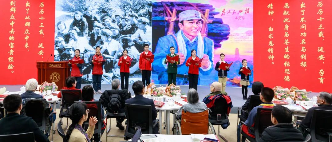 ▲活動(dòng)現(xiàn)場,張思德生前所在部隊(duì)官兵與由中國人民大學(xué)、延安中學(xué)、人大附小學(xué)生組成的“延河講師團(tuán)”,共同帶來原創(chuàng)朗誦《我們從延安走來》。