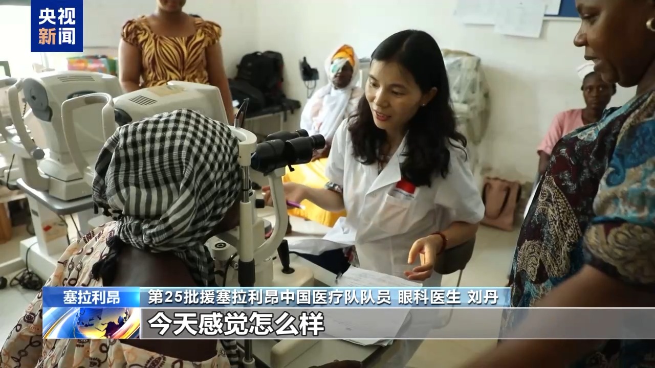 第25批援塞拉利昂中國醫(yī)療隊隊員 眼科醫(yī)生 劉丹:今天感覺怎么樣?好了?好多了?讓我檢查一下你的眼睛……手術效果非常好,過幾天就會好轉了。