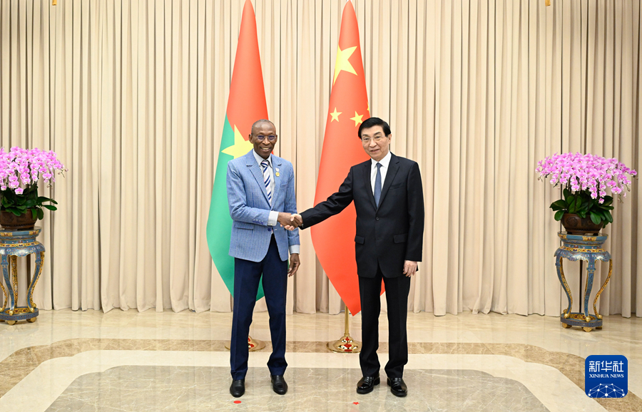 9月4日,全國政協(xié)主席王滬寧在北京會見來華出席中非合作論壇北京峰會的布基納法索總理基耶朗。新華社記者 申宏 攝