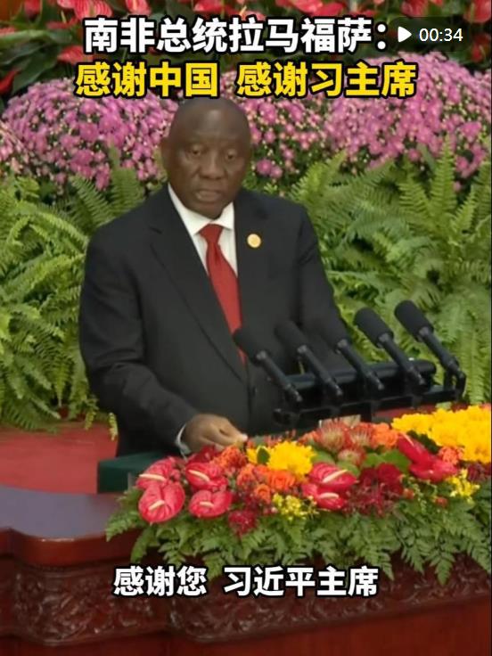 南非總統(tǒng)拉馬福薩5日在中非合作論壇北京峰會開幕式上說,中國與非洲人民的友誼和團(tuán)結(jié)源遠(yuǎn)流長。“我們感謝中國長期以來致力于與非洲大陸擴(kuò)大合作、協(xié)同發(fā)展。感謝您,習(xí)近平主席?!?/p>
